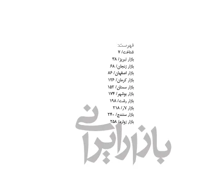 این کتاب در یازده فصل تنظیم شده و در هر فصل به یکی از بازارهای شاخص ایران پرداخته شده است: