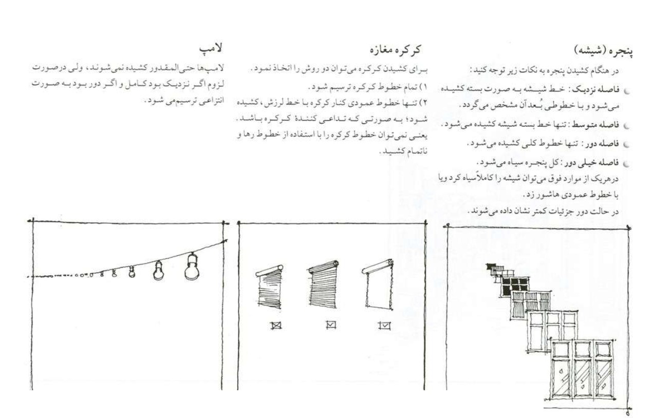 - تناسب و مقیاس: چطور نسبت ابعاد در پلانها و نماها را حفظ کنیم تا تصویر نهایی برای دیگران فهمیدنی باشد.