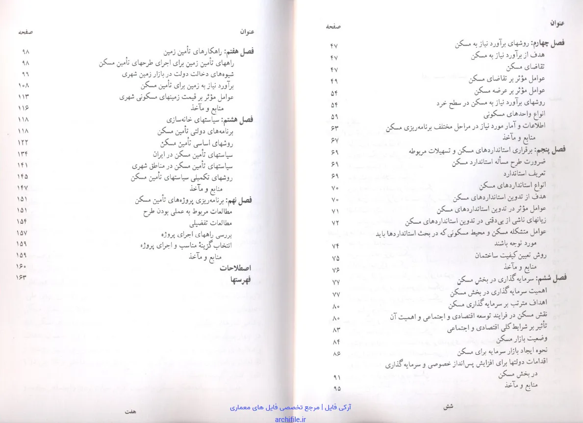 کتاب شامل ۹ فصل اصلی است که هر کدام به بخشی از فرآیند برنامهریزی مسکن میپردازند:
