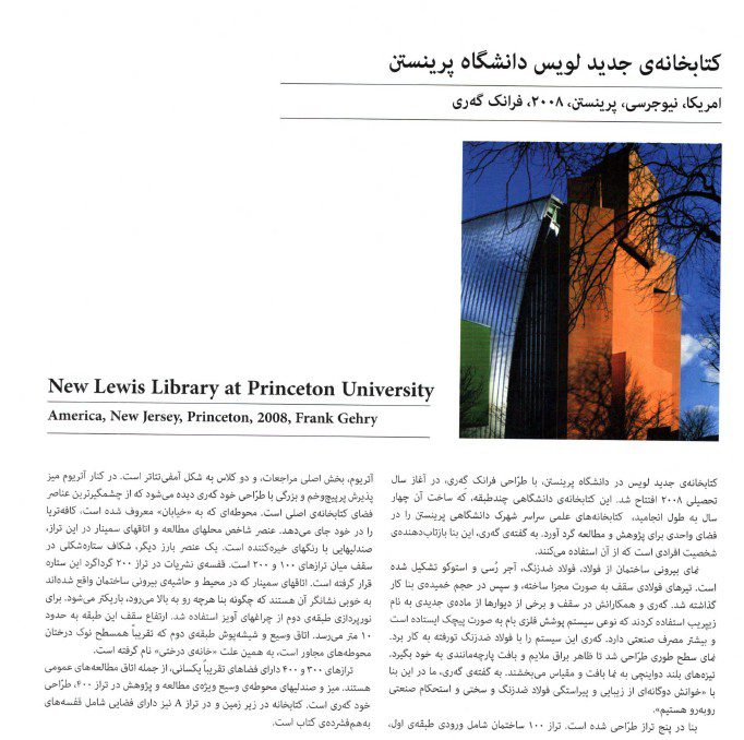 این کتاب که توسط انتشارات هنر معماری قرن به چاپ رسیده، به عنوان یکی از منابع اصلی در سرفصل دروس معماری و طراحی داخلی شناخته میشود. نویسندگان در این اثر ۲۲۷ صفحهای، به خوبی سیر تحول فضاهای مطالعاتی را از دوران کلاسیک تا پیشرفتهترین نمونههای مدرن امروزی بررسی کردهاند.