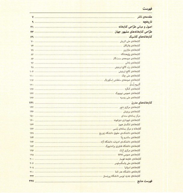 ۱. آیا این کتاب شامل نقشهها و پلانهای کتابخانهها هم میشود؟ بله، در بخش بررسی پروژههای کلاسیک و مدرن (از صفحه ۶۹ تا ۲۲۲)، تحلیلهای تصویری و نقشههای فنی برای درک بهتر فضا ارائه شده است.